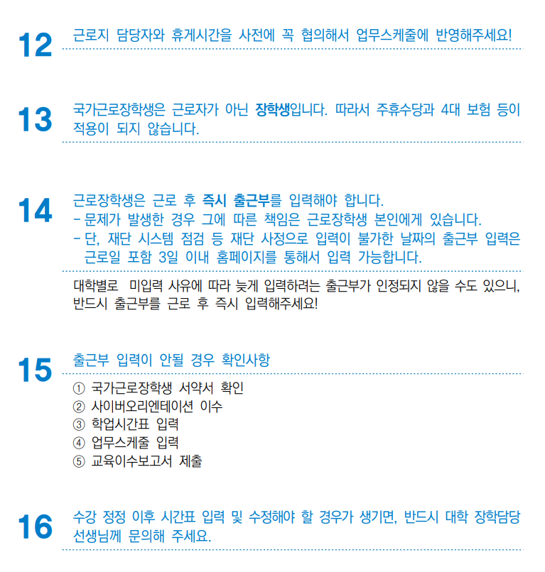 ★ 근로장학생에 선발된 학생들은 아래의 사항을 반드시 필독하세요~~!!