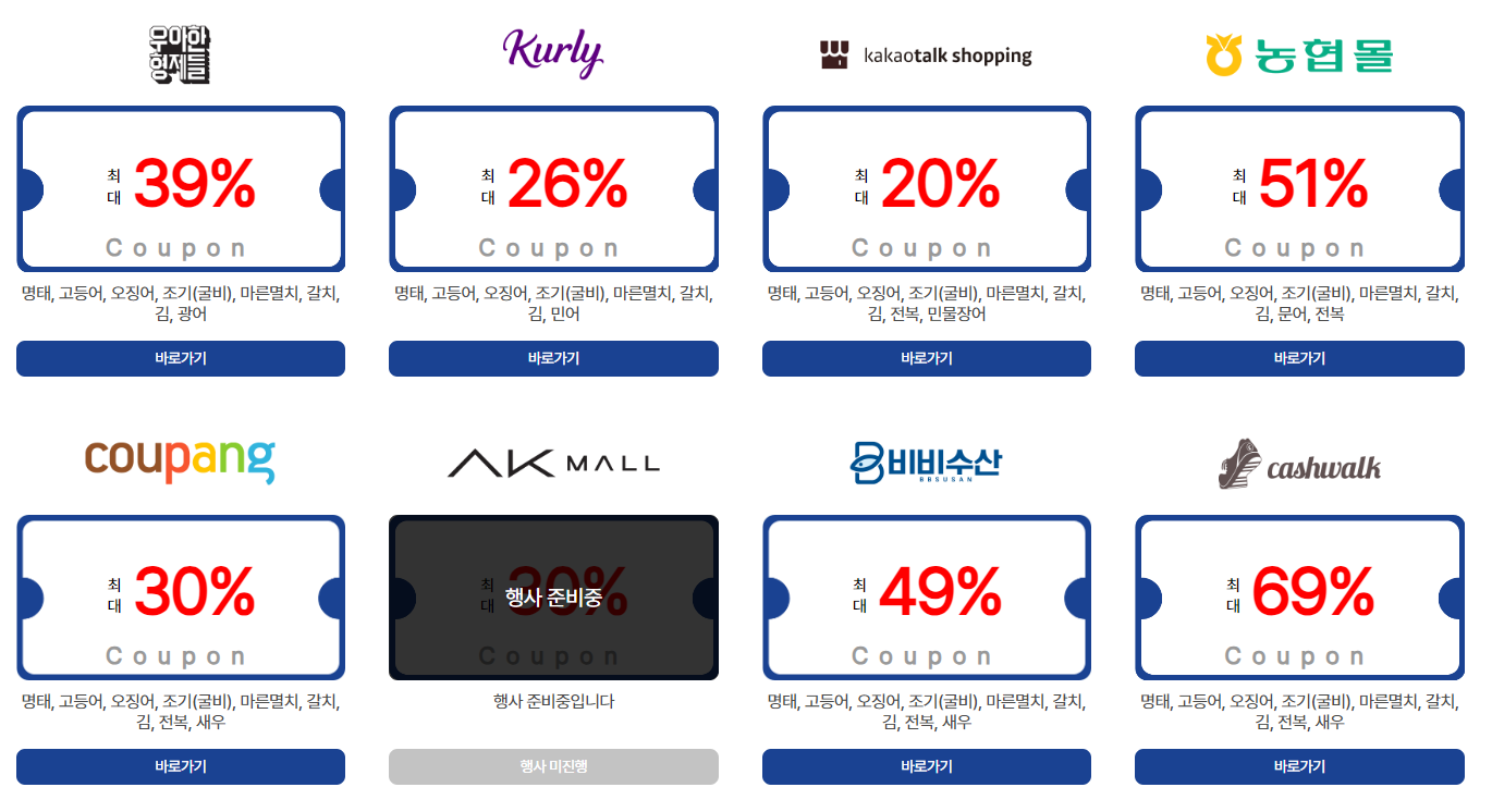 ♣ 수산물 할인 행사 및 혜택