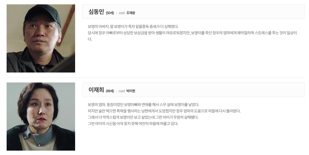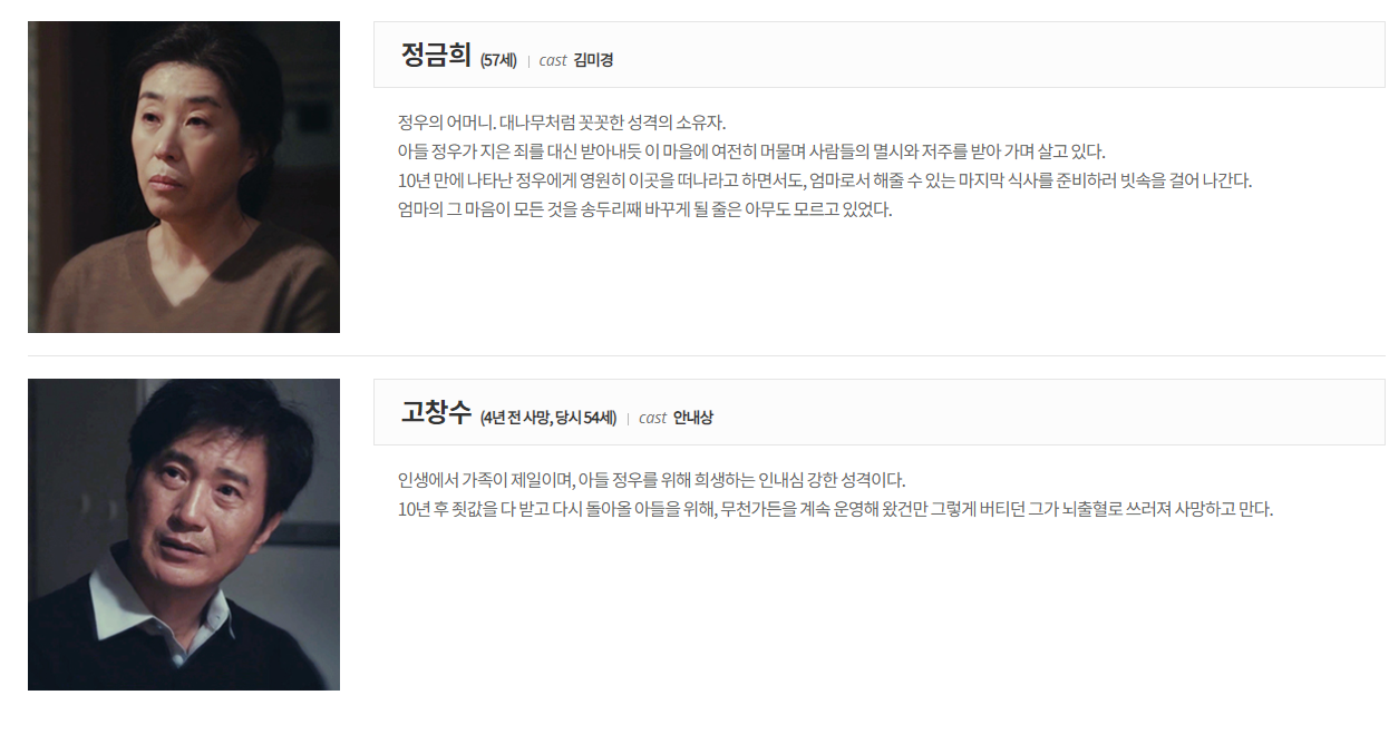 출소 후 고향으로 돌아온 고정우는 마을 사람들의 냉대와 멸시를 받으며 더욱 불안해집니다. 심지어, 출소한 아들을 매몰차게 내친 어머니가 갑작스럽게 사고를 당하자 고정우는 더 큰 죄책감과 의심에 빠지게 됩니다.